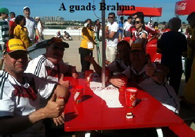 Zunächschd hodd ons dr Luciano am schbäda Nochmiddag zom Flughafa gfahra. Doo hemmr joo jedzd noo genügend Zeit ghedd, ond so hemmr onsre ledschde Real en a baar Deesla Bier inveschdierd. Wia mir noo gemiedlich bei onsrm Bierle hoggad, senn dia Mexikaner eigloffa. Dia henn jo an dem Daag en Fortaleza gega Holland gschbield. Dia warad dr vielleichd agfressa!! Koi Wondr, wenn da nooch ra 1:0-Fihrung noo en de ledschde Minudda mit 2:1 verliersch. Dia henn sich echd zuagschiddad, doo senn mir wahre Woisaknaba drgega. Guad, midd a baar hemmr ons no noo ganz nedd ondrhalda.